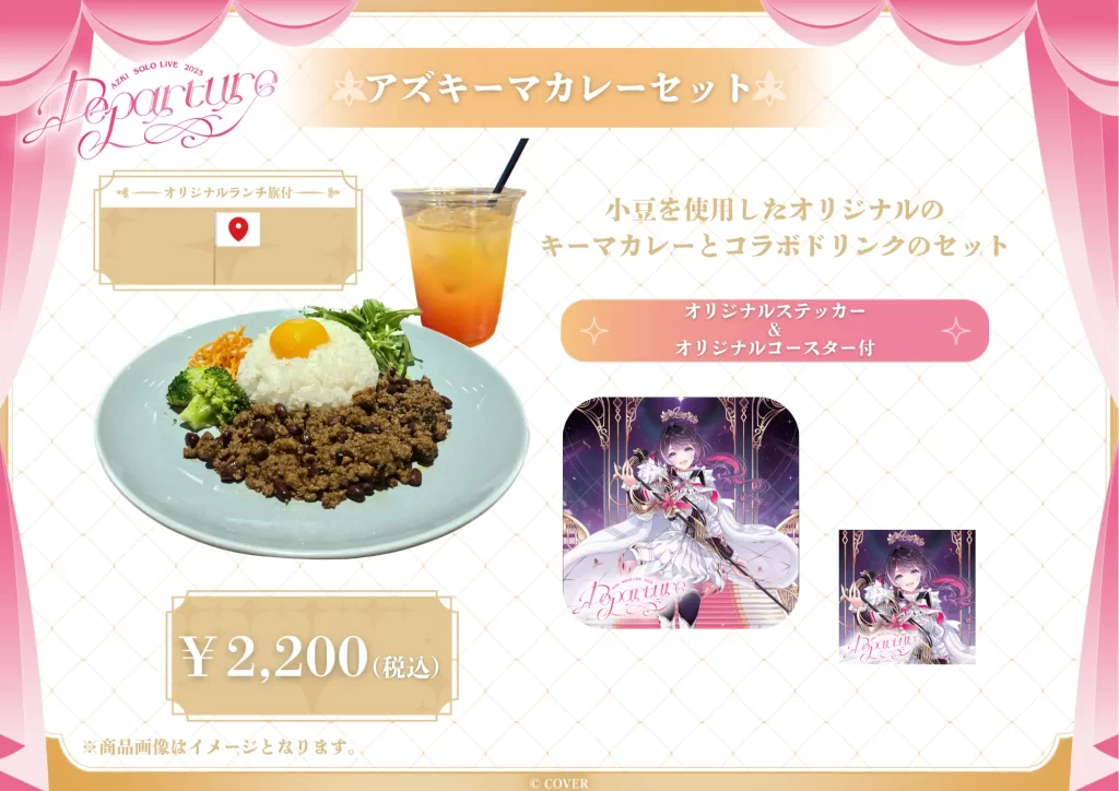 また、本公演のキービジュアルを使用したオリジナルのランチョンマット(コラボフードセット購入者限定特別オプション「AZKiポップアップランチョンマット」 ¥800税込)を館外2階The Blue Bell・館内3階CLUB 38でコラボフードセットをご購入のお客様にお買い求めいただけます。