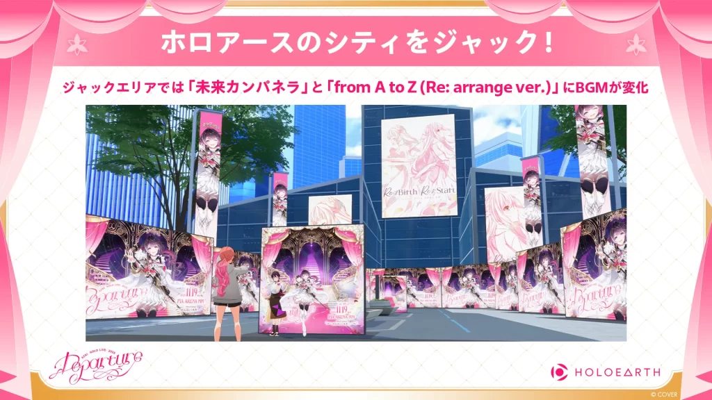 「オルタナティブ・シティ」エリアで、ライブキービジュアルや『Re:Start』『Re:Birth』のジャケットイラストを使ったストリートジャックを実施します。