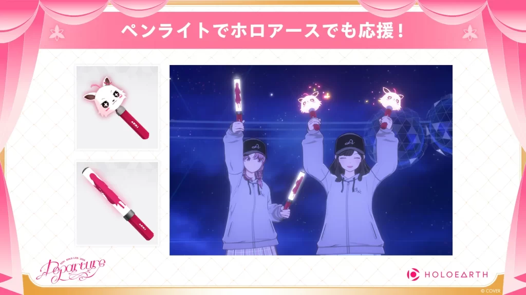 期間中は、”Departure” のキービジュアルを使ったストリートジャックの実施やライブTシャツ・「開拓者ライト」などのライブグッズをホロアースでも発売!